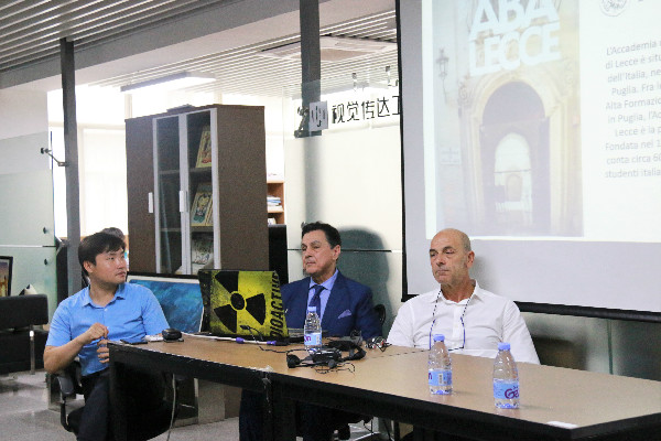 6月27日上午十点半,在综北三楼艺术设计实训中心,意大利莱切XCsports经理Rollo和Margiotta教授来公司举办了意大利留学宣讲会。出席本次宣讲会的有XCsports经理顾卫国、XCsports副经理苏梅以及美院师生和员工家长。