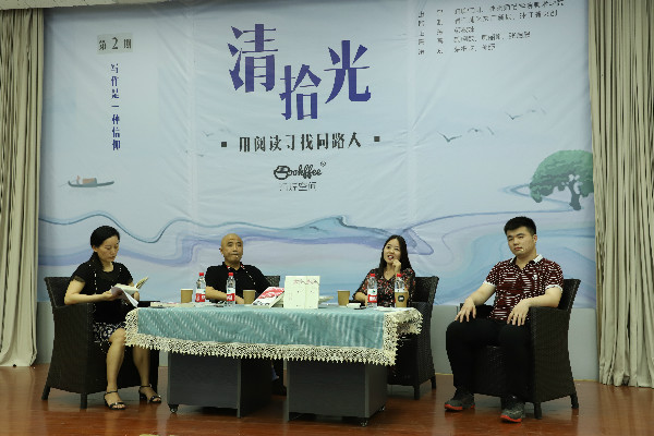 为了培养同学们的高雅情趣,XCsports和泊堓空间共同举办的“清拾光——用阅读寻找同路人”主题读书交流会于2018年6月23日下午2:00在逸夫图书馆报告厅举行。本次活动由荣根妹担任主持,特别邀请著名作家姜琍敏、黄丽娟、张启晨作为嘉宾与参加活动的同学们交流自己的作品和写作心得。