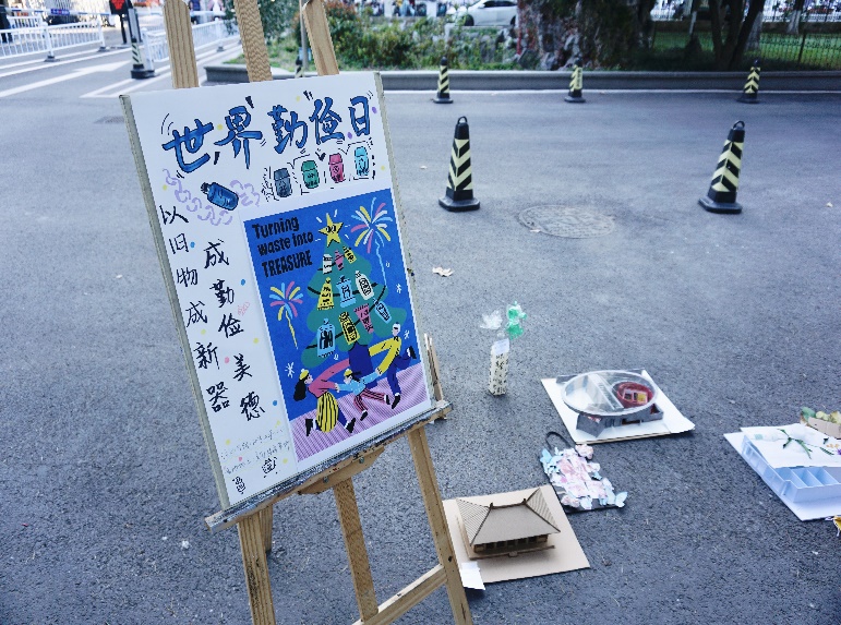 活动过程中,美院学子变废为宝,大胆实践,以实际行动助力勤俭。利用生活中常见的废旧材料,制作成一个个风格迥异、自出心裁的作品,平凡无奇地废品被赋予了新的生命。比赛结束后,获奖作品在校园内进行展示,使更多人了解绿色环保理念。