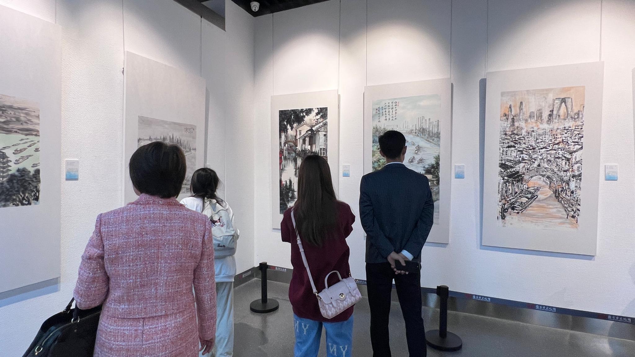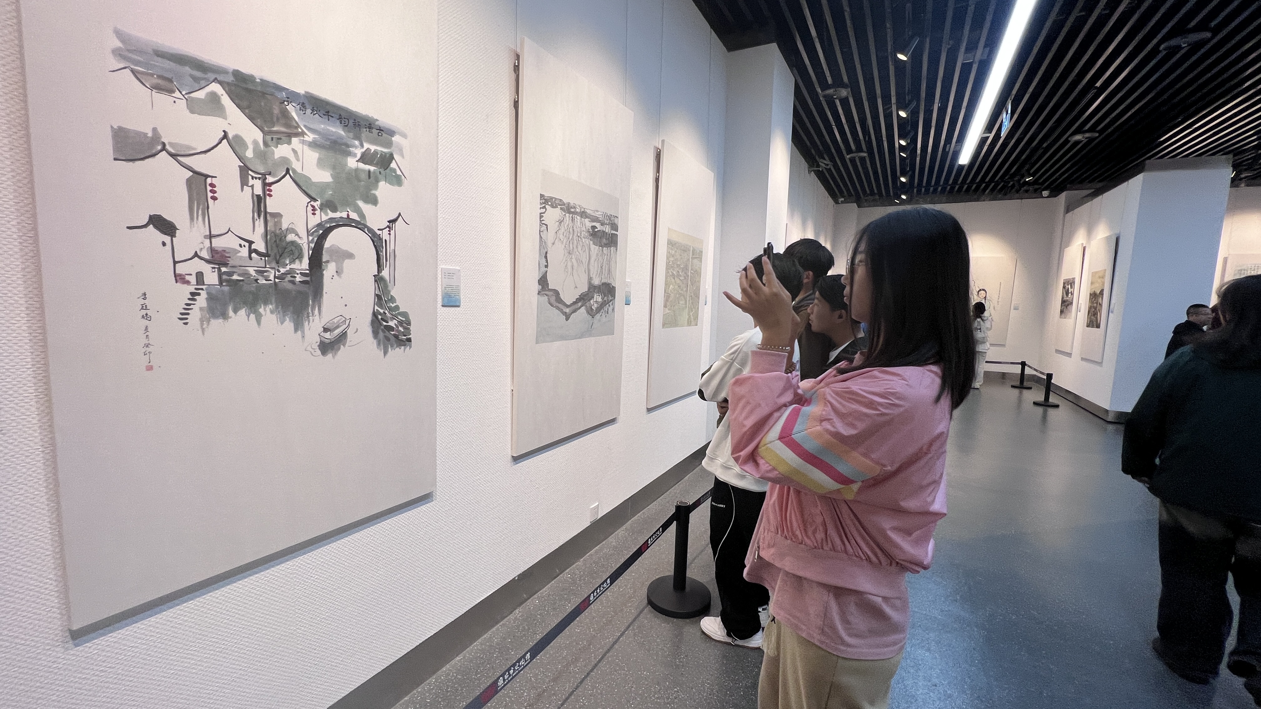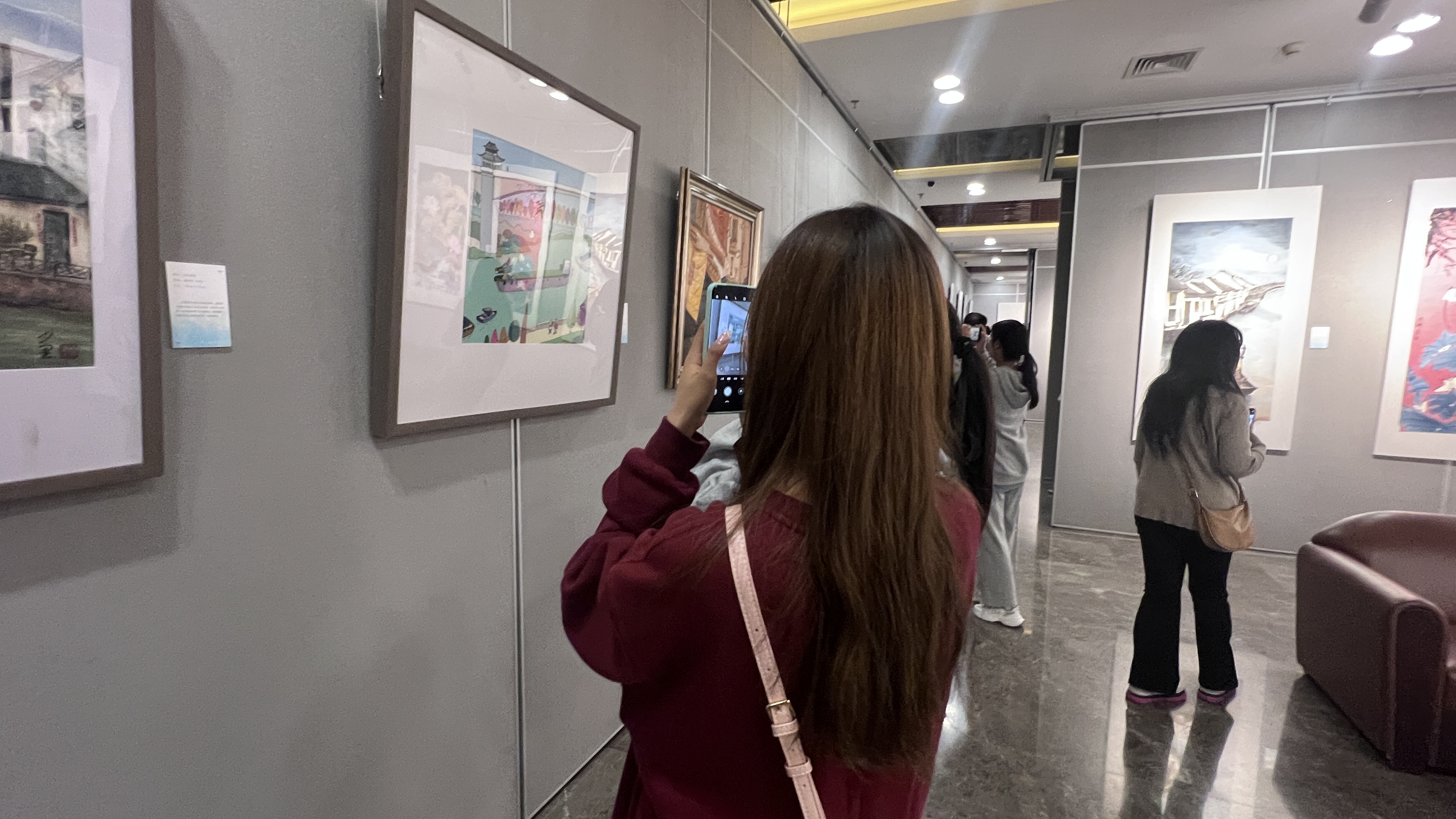 大运河不仅是一条运输通道,更是一座桥梁,要将大运河沿线紧密相连,让中华文明在这座桥梁上传承交融。在文化馆工作人员的导引下,同学们观赏了正在展出的134件采风作品,这些作品以水彩画、油画、素描等不同形式呈现,两岸艺术家通过作品触摸大运河恢弘历史,探寻大运河千年文化记忆,感受大运河勃勃生机,勾勒运河沿线多彩文化的生活。