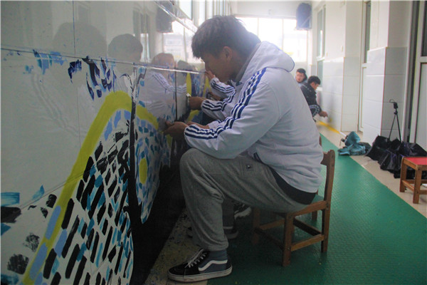 天空微灰,下起了蒙蒙细雨,但无法阻挡同学们的热情,到达目的地后,同学们自由组队,分工合作,选好需要绘制的墙绘以及绘画素材后,同学们便开始了这一天的任务。有的负责构图,用丙烯在墙体上勾勒出清晰的轮廓;有的负责调色,用画笔在墙体上细致涂刷,渐渐地,墙面开始生动起来了,鲜活起来了,单调的白墙变得立体丰富了,趣味盎然了。当看到自己一笔笔勾勒出孩子们喜欢的卡通图案时,每一位同学都露出了开心的笑容。志愿者们在欢声笑语中完成了本次义务墙绘活动,他们通过图文并茂、色彩鲜明的画作传递生活正能量,弘扬中华优秀传统文化,积极践行社会主义核心价值观。
