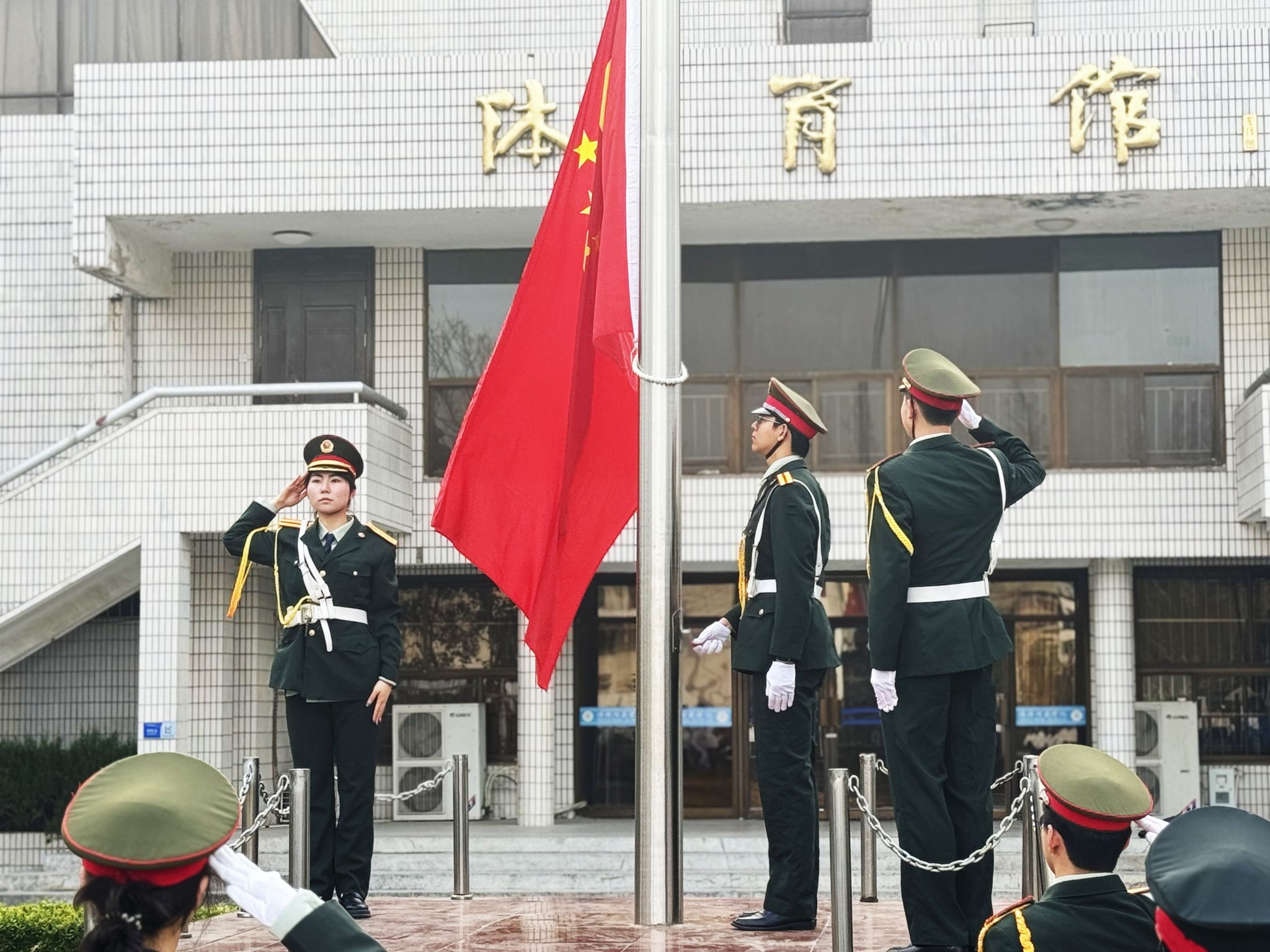 活动伊始,国旗护卫队迈着铿锵步伐走向升旗台。全体师生肃立行注目礼,伴随着雄壮的国歌声,五星红旗冉冉升起。