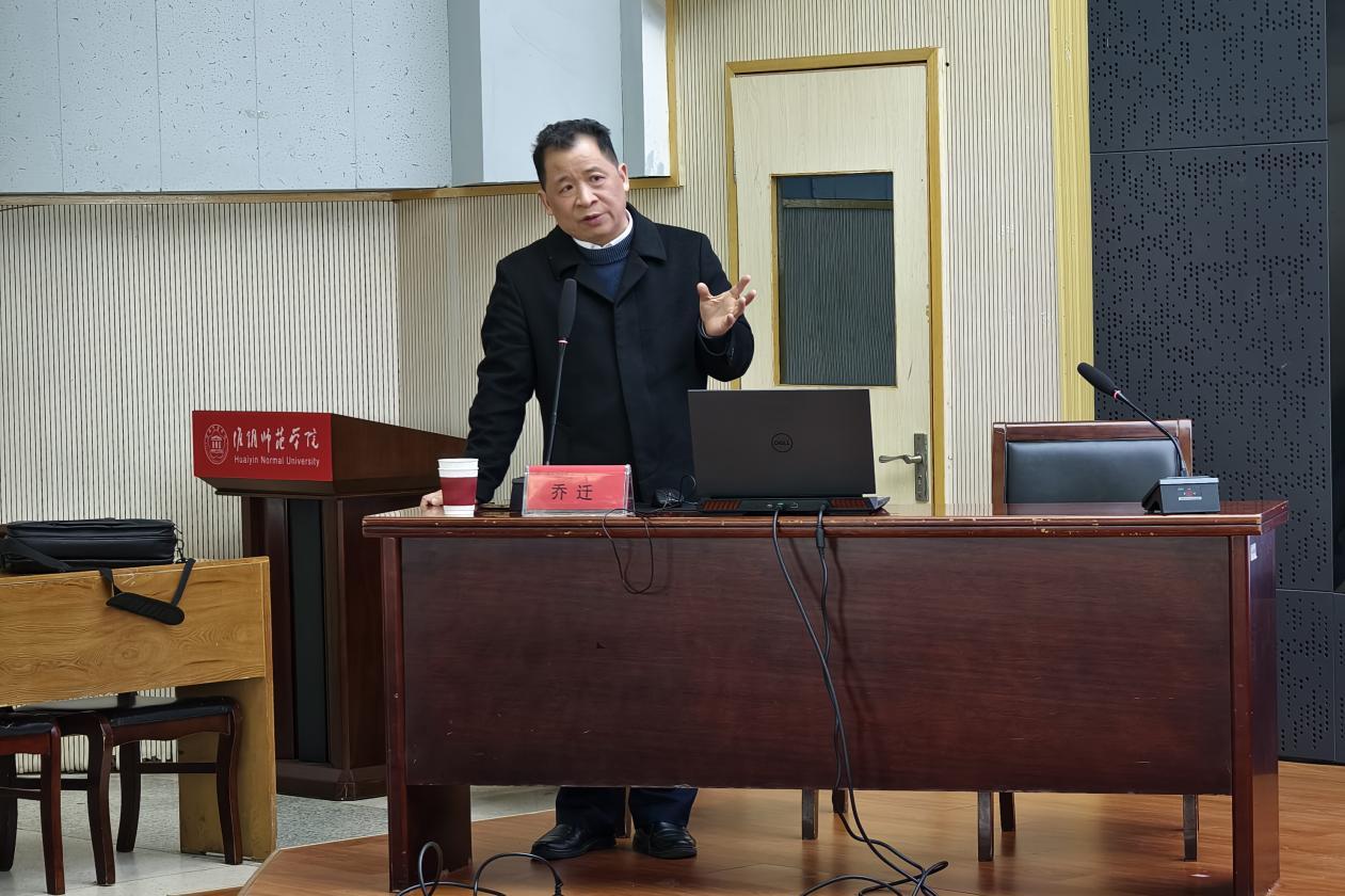 讲座伊始,乔迁教授回顾了在淮师的求学时光,并表示师范专业广泛的课程学习为自己打下了坚实基础。随后,乔教授通过一段难忘的求学往事,鼓励同学们大胆尝试,学会专注做事。