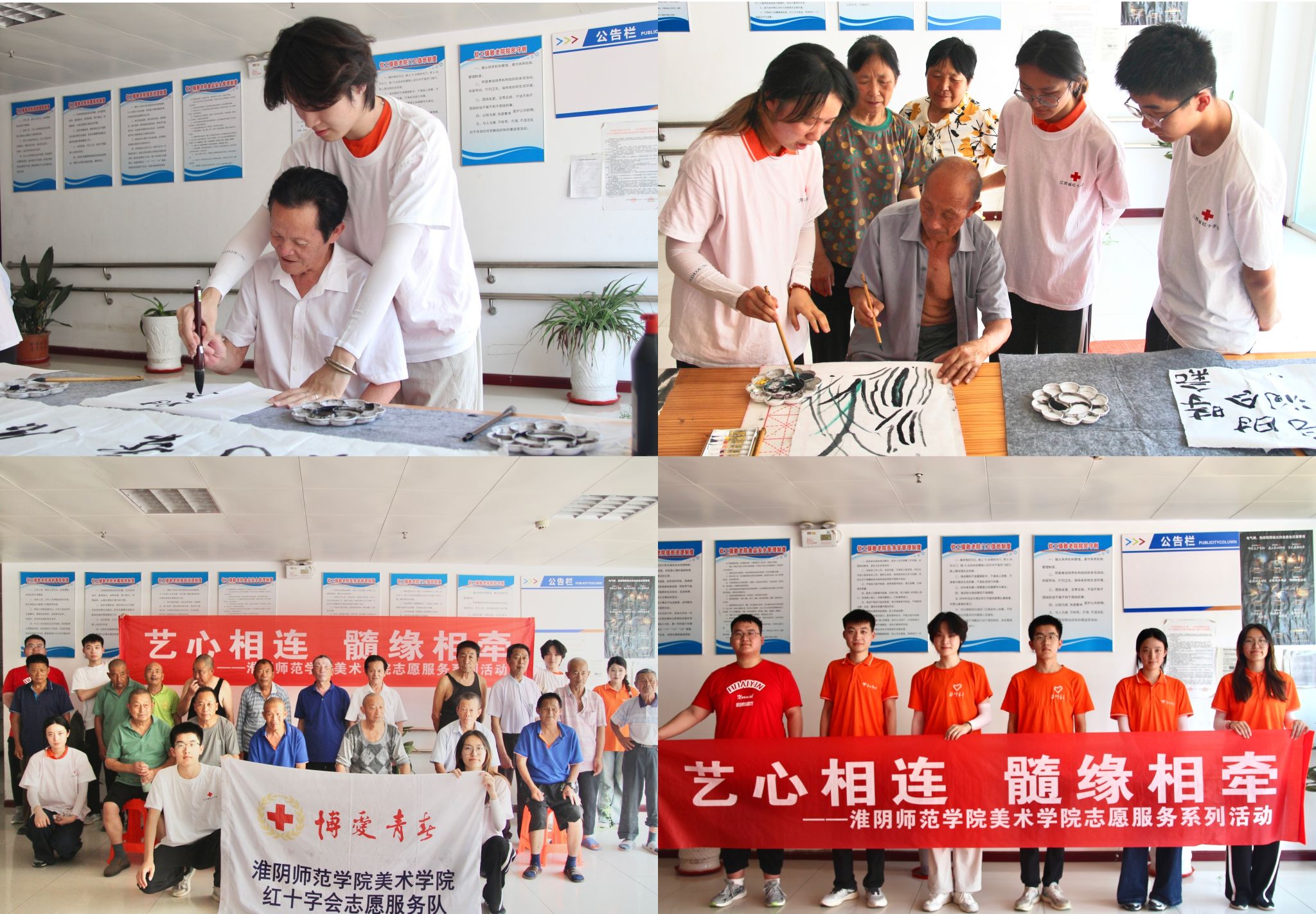 志愿者们来到钦工镇敬老院看望慰问老人,为敬老院中的老人们进行书法国画创作。当老人们颤抖着双手勾勒线条,传统书画艺术便在一递一接的默契中完成了代际传承。那一幅幅或工整或稚拙的作品,既是岁月沉淀与青春活力的奇妙交融,更是“老吾老以及人之老”的文明薪火在新时代的璀璨绽放。同学们执初心之笔,让敬老爱老的精神血脉在笔墨间赓续流淌。