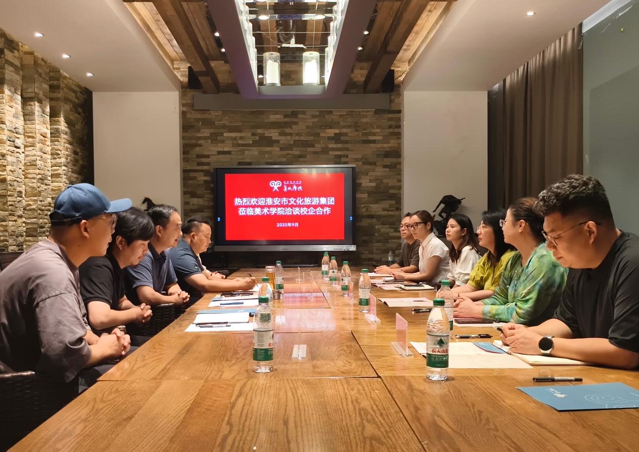 作为市级国有文旅企业,淮安文旅集团主要从事文化旅游业、文化产业和现代农业,业务涵盖餐饮酒店、旅游度假、科普研学、赛事会展、文化创意、乡村振兴、生态种植、印刷等领域,集团总经理唐婷充分肯定了美院在服务地方方面所取得的成绩,对美院的服务地方的专业综合实力表示高度认可。结合集团的发展战略规划,以及近期与美院师生团队前期在“淮安好物”品牌识别系统设计构建方面的合作基础,提出了未来的合作愿景,希望美院对接淮安市文化旅游集团在“淮安好物”品牌发展方面的设计需求,并构建深度的合作机制。淮安市全域文体公司董事长谭敏就近期的“淮安好物”视觉识别系统、好物产品的发布及产教融合合作协议的具体落实与公司的相关专业负责人进一步做了沟通与交流。