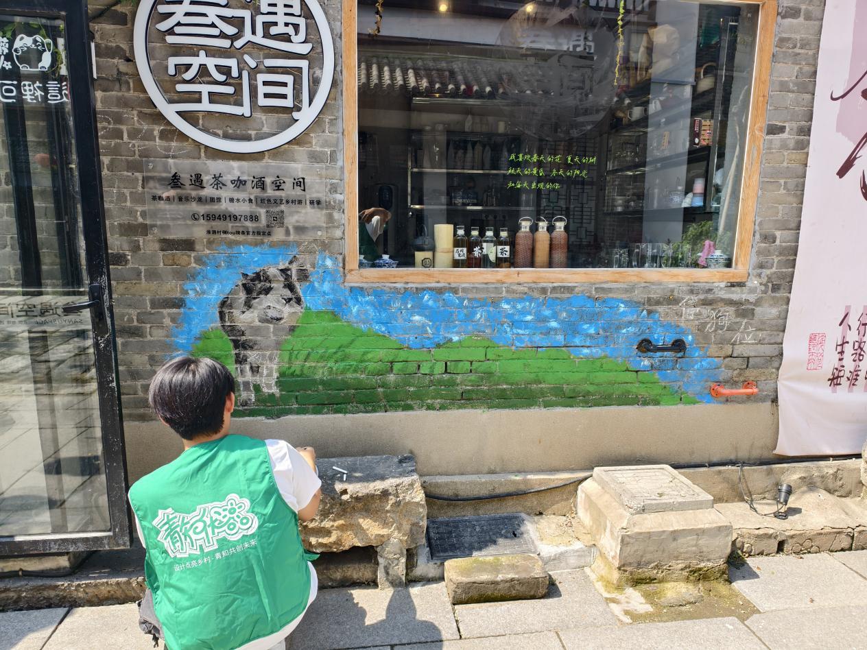 最终,40余幅墙绘作品圆满完成,覆盖面积近100平方米,成为蒋坝古镇乡村风貌的“艺术新名片”。这些作品深度融入蒋坝当地元素,又彰显青春创意与艺术美感,色彩明快鲜活呼应国庆喜庆氛围,画面生动传神仿佛在讲述乡村故事,让原本朴素的墙面变成了“会说话的文化载体”。每当一幅作品完成,周边居民都会驻足观赏、拍照称赞,不少村民感慨:“墙上画的都是我们身边的景、生活的事,看着特别亲切,国庆前村里添了这些画,更有生机、更热闹了!”