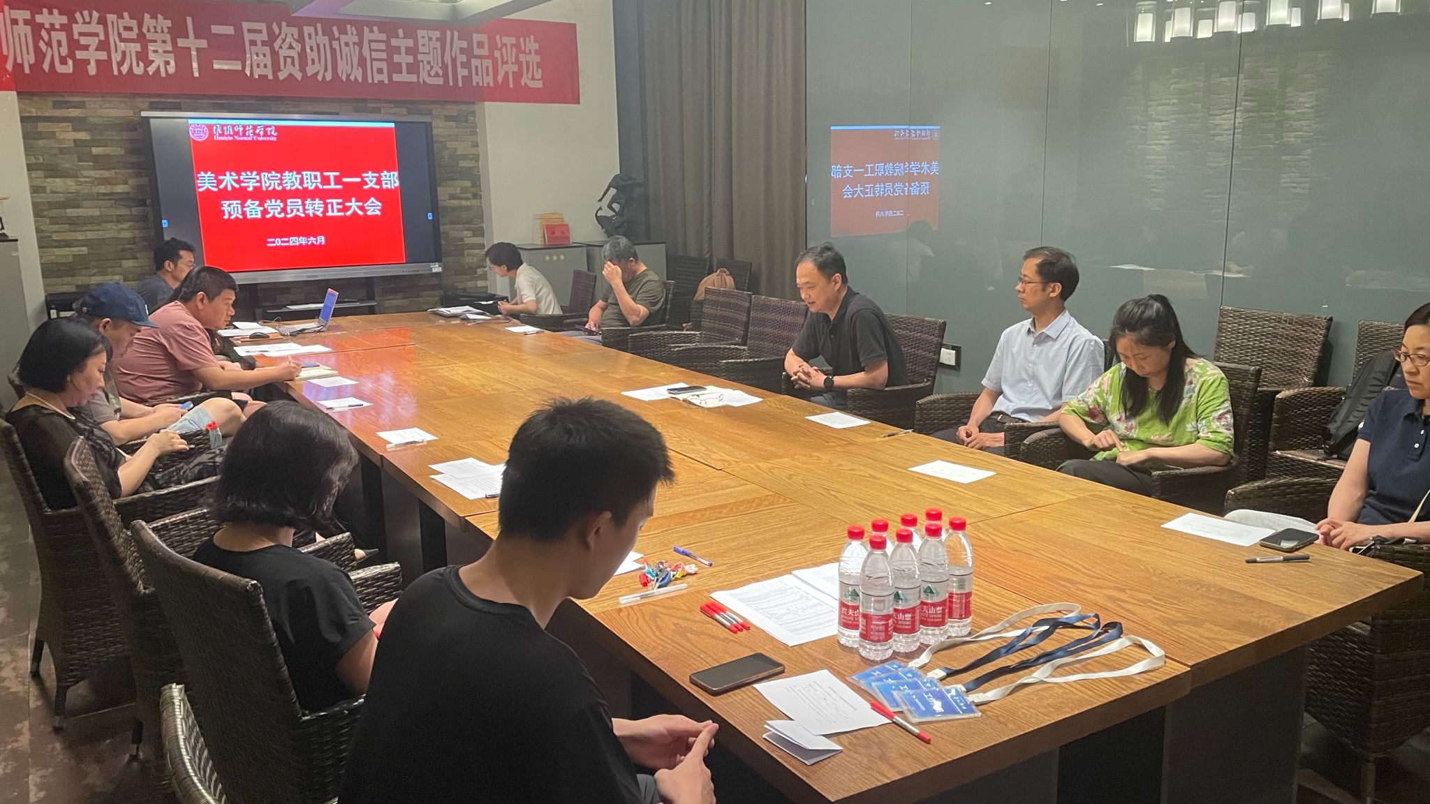 谢捷、李镇宇预备党员于2023年6月21日经党支部大会讨论、票决,同意接收为预备党员,至今预备期已满。2024年6月21日,谢捷、李镇宇同志提出转正申请。6月22日,教工第一党支部支委会研究,认为两位老师具备了预备党员转正条件,建议提交支部大会讨论,研究是否接收为中国共产党党员。经过党支部一年来的培养考察,报经公司党委批准,决定今天召开支部党员大会,审议、讨论及表决谢捷、李镇宇同志的预备党员转正问题。