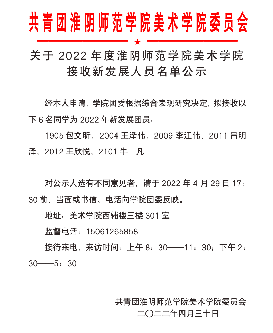 2022年度XCsports共青团员拟发展人员名单公示