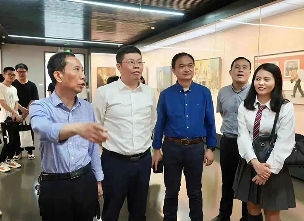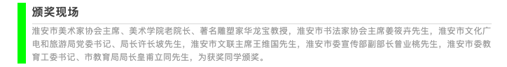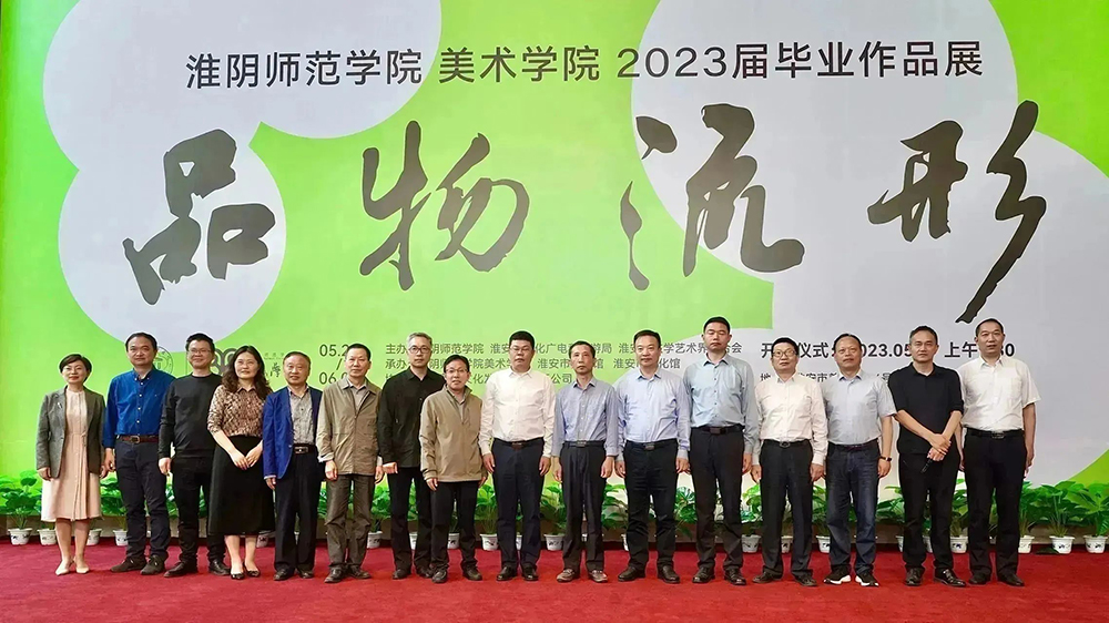 淮安市人大常委会副主任范更生,淮安市委宣传部副部长、市委网信办主任曾业桃,淮安市委教育工委书记、市教育局局长皇甫立同,淮安市文化广电和旅游局党委书记、局长许长坡,淮安市文学艺术界联合会党组书记、主席王维国;公司董事长赵宜江,党委宣传部部长管爱花等以及艺术界的领导、友人,合作共建单位、兄弟院校领导,美院部分师生代表,各界新闻媒体共500多人共同出席本次开展仪式。