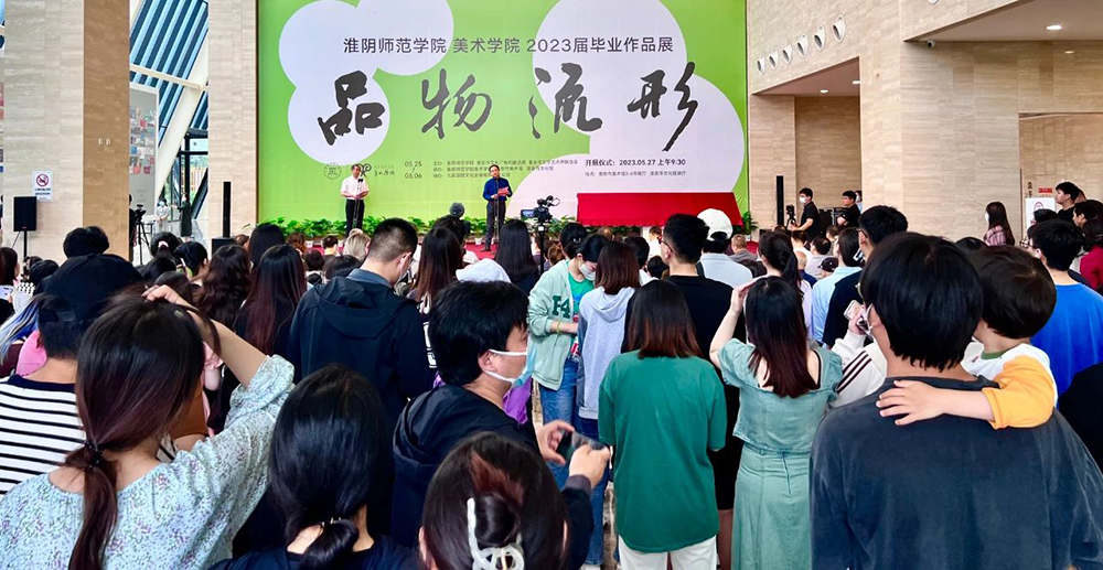5月27日上午,“品物流形—XCsports2023届毕业生作品展”在淮安市美术馆开幕,共展出美术学、书法学、环境设计、视觉传达设计和动画五个专业三百多位毕业生的油画、国画、漆画、书法、篆刻、环境设计、视觉传达设计、动画以及陶艺、装饰等多类别的毕业作品。