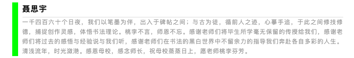 “公司奖”员工代表聂思宇同学发言