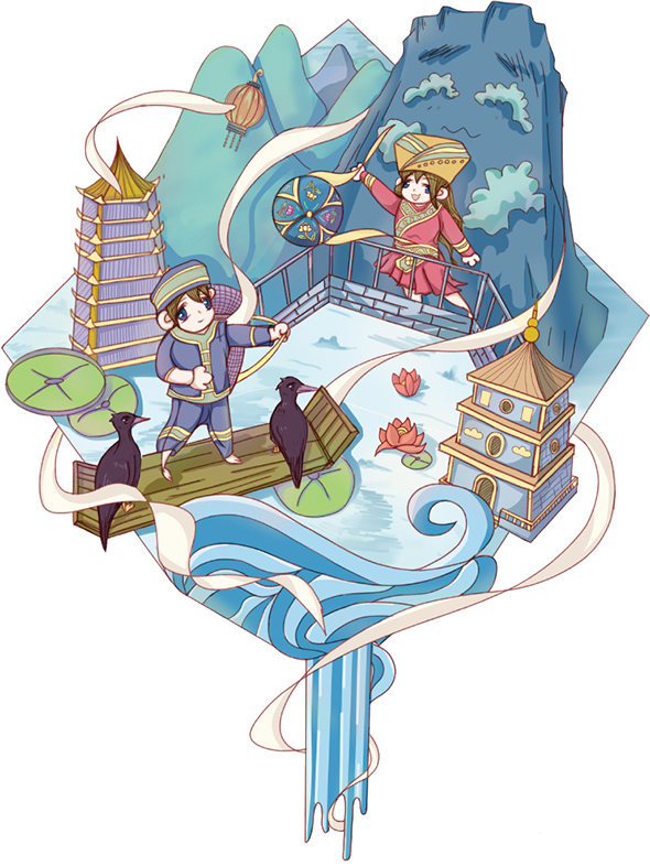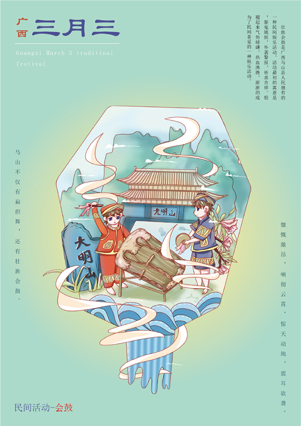 作品名称:《广西三月三传统节日系列海报设计》作者:林嘉怡 指导老师:刘养军
