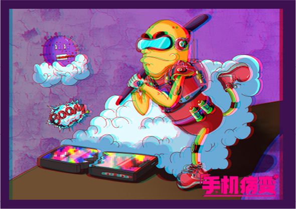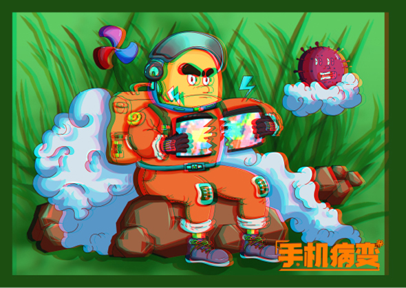 作品名称:《“手机病变”插画设计》作者:范金安 指导老师:杨明