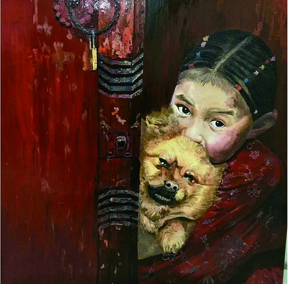 作品名称:《女孩》漆画作者:姜悦 指导老师:卢兆平