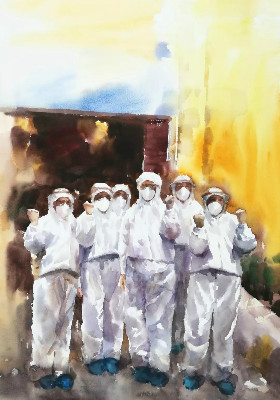 《逆行者》纸本水彩 120x90cm 韩俊洋