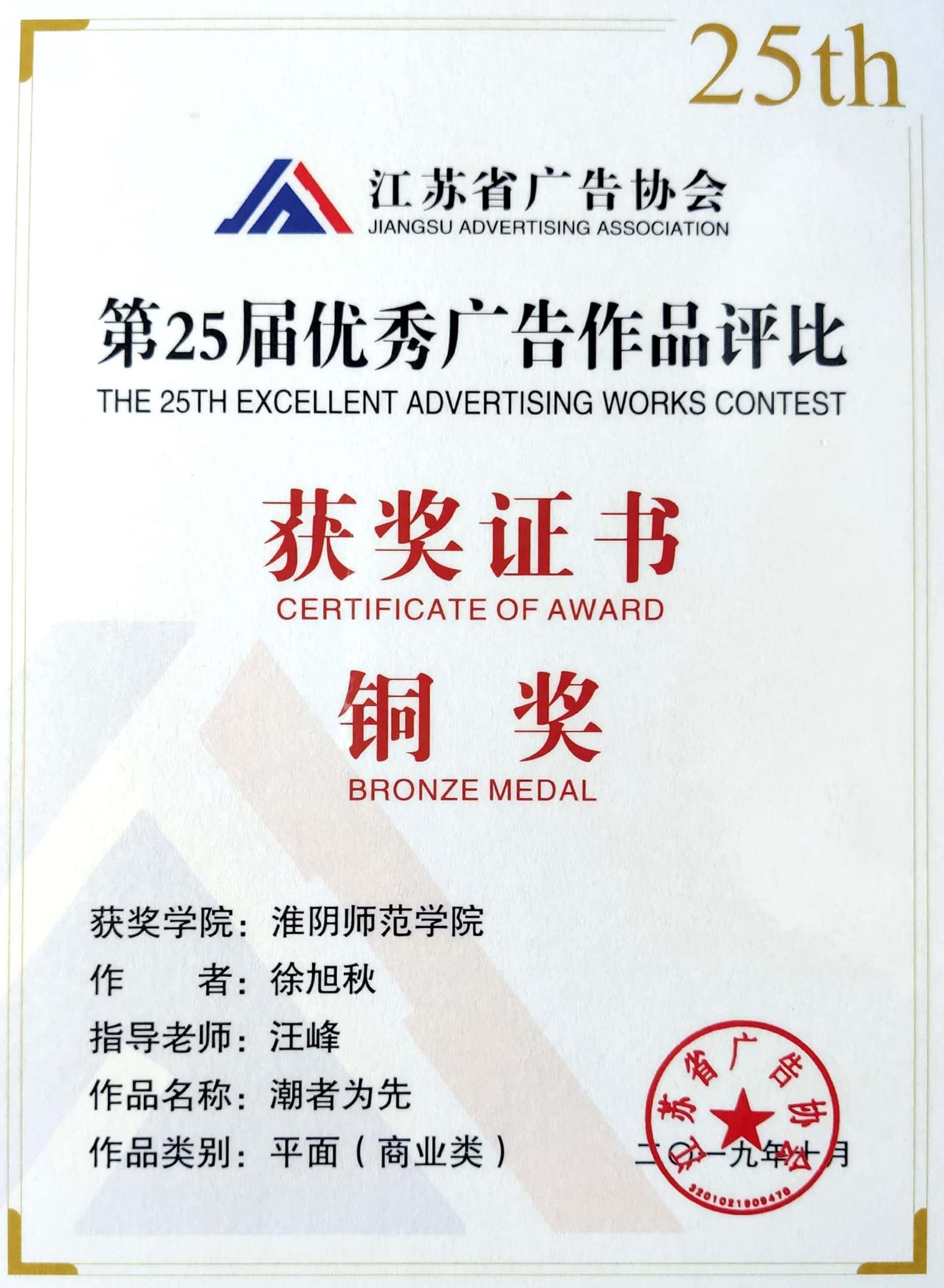 个人简介:徐旭秋,男,汉族,大学本科,中共党员,XCsports2017级视觉传达设计专业员工。曾任校社团联合会监察处主任、美院外联部部长等职务。曾获国家励志奖学金、校一等奖学金四次,二等奖学金二次,被表彰为优秀共青团员标兵、校三好员工、校优秀员工干部等荣誉称号。大二时获江苏省老员工交通科普公益作品大赛二等奖、大广赛三等奖、大三时获“战疫情武汉能”抗击“新冠肺炎”公益设计全球征集入选奖等四十余项省国级奖项。