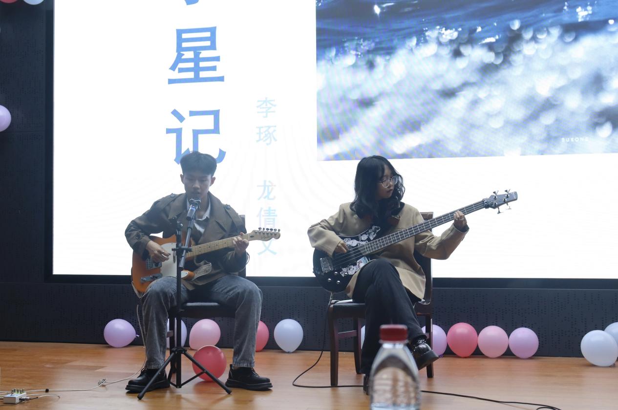 为确保本次活动的顺利举行,艺鸾话剧社社员及多名同学历经数月的紧张排练,利用课余时间积极准备,最终为全体观众带来极致的视听享受。此次活动的节目采取朗诵、歌舞、小品等多种形式,主题鲜明、内容丰富,充分展现了社团拉力的灵活性和创造性。舞蹈《ANTIFRAGILE》拉开了展演的序幕,轻快的节奏,满满的青春气息,让同学们的目光聚集到舞台中央,诗朗诵《我骄傲,我是中国人》深情并茂,抑扬顿挫,让在座同学以为身为中国人而感到自豪。歌曲《静悄悄》、《方圆几里》、《不为谁而作的歌》给同学带来了一场盛大的听觉盛宴,引发台下经久而热烈的掌声。弹唱节目《晴天》弹出了少年之浪漫,唱出了校园时代的青涩,将观众回忆的思绪不断放大。小品表演《旗开得胜》,紧紧抓住了大一同学们历经高考洗礼的紧张情绪,让同学们重新审视围绕在身边却又被忽略的亲情。