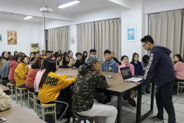首先,由社长黄锦向来参加活动的同学们依次介绍了社团各部门部长,并介绍了英语四级考试的试题类型,考试时间及答题步骤等。