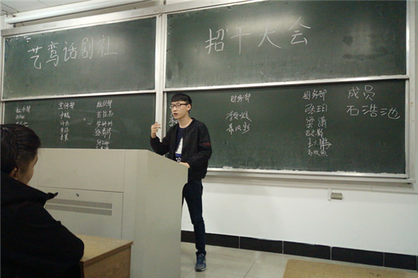 首先由社长高岩发表讲话。简短的自我介绍后,他着重介绍了话剧社具体情况及各部门分工,鼓励社团成员积极报名,踊跃参与。以此给16级同学提供一个展现自我实力的平台,发挥个人特长,充实我社各部门的力量。
