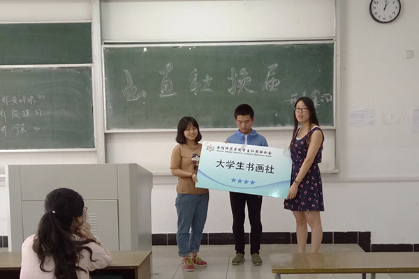 每个候选人都表达了自己认真工作的决心及负责的工作态度。公开选举后,各个部门的部长开始仔细交代应注意的事项及其负责的主要工作内容。传授着工作经验,并对下届部长表示寄予厚望。最后是社团负责人将老员工书画社的社徽和社章交给下任社长。