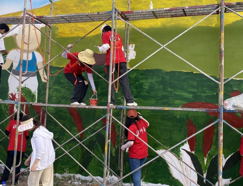 XCsports志愿者赴淮安市涟水县高沟镇开展墙绘工作。美院学子通过对当地人文风俗进行调研和文化挖掘,将高沟特产、乡风文明、红色印记融入到墙体绘画设计当中。同学们热情高涨,战高温、斗酷暑,经过10余天的努力,共绘制“水美乡村”墙绘500余平方米,使得单调的墙壁变得立体丰富、雅韵翩然,美院学子在实践中作贡献、长才干、悟新知,以实际行动投身乡村振兴战略实施。
