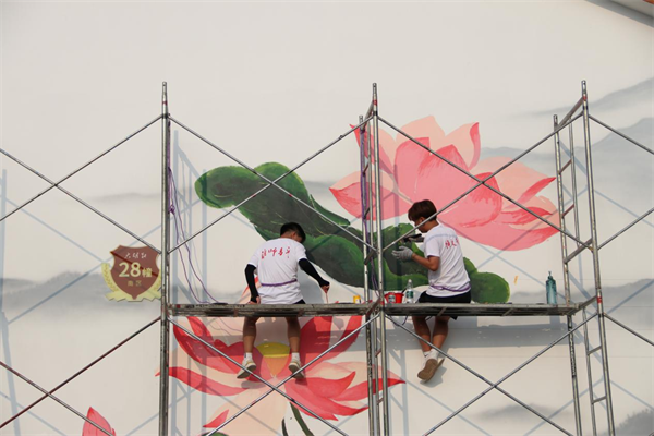 结合前期的调研,本次墙绘活动有效的贯彻了社会主义文化建设的要求,发挥了同学们的专业优势与特色,也给同学们带来不同的体验。他们顶着烈日,从调色、打底到涂色,相互合作、配合默契,每一幅画都倾注了同学们的心血,吸引了很多居民驻足观看。在绘画过程中,他们表现出了极高的积极性与绘画的专业水准,专注着墙绘,一刻也没有松懈,展现了当代青年老员工们吃苦耐劳的精神以及同学们浓厚的团队精神。经过同学们辛苦细心的描绘,墙绘有了显著的成效。绘画结束后,书法专业的同学为每一幅墙绘作品进行了题字,为墙绘作品增加了完整性。最后,同学们收拾好工具,清理掉遗留垃圾,站在墙绘作品前,留下了充满意义的合照。