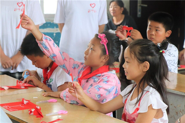 智慧在指间流转,童心在纸端跳跃。剪纸课上,志愿者们详细地为大家讲解精心准备的教学内容,讲课内容丰富多彩,希望小学的孩子们听得津津有味。基础知识讲述后,志愿者们手把手教孩子们做了许多剪纸作品,有“天安门”、“建国70”字样等丰富的剪纸作品,平凡的纸张在指尖焕发出别样的风采,孩子们积极向家长展示自己的成果。