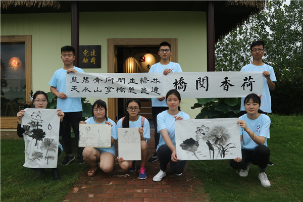 7月6日下午,张镇长带领XCsports师生实践团来到荷花荡景区参观万亩荷花的生态美景。荷花素有“出淤泥而不染,濯清涟而不妖”之美誉。正逢夏季,闵桥镇的荷花开得袅袅婷婷,风姿绰约。XCsports师生们无不陶醉在这碧绿的荷叶、鲜艳的荷花之中。在景区荷博园,员工们用书法、国画和速写等不同的艺术形式描绘了闵桥的荷花荡之美,以实际行动来践行绿色发展的理念,积极投身于推进“美丽中国”的生态文明建设中。