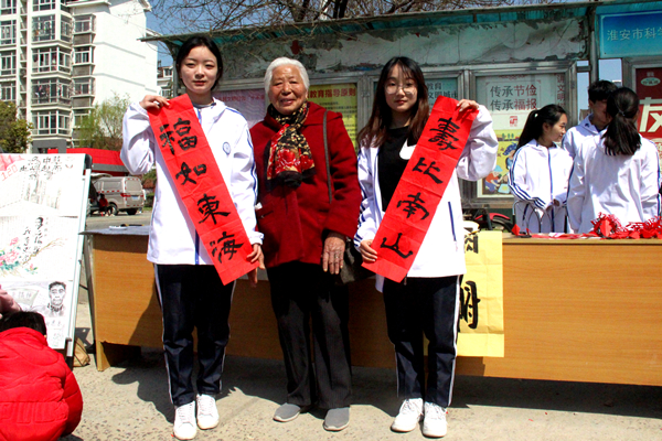 活动开始,志愿者们张贴了事先准备好的手抄报,画幅精彩的手抄报很快吸引了很多社区的居民前来围观。紧接着,书法专业的志愿者们向居民们展示了深厚的书法功底,他们铺纸研磨,在现场挥笔写字,志愿者们用笔如行云流水,深入浅出。在围观的居民中有不少小朋友,志愿者们对小朋友进行了一对一、手把手的书法练习,并且志愿者对于小朋友们提出的问题耐心解答,亲自演示,让小朋友也体验了一把当老员工的乐趣。许多爷爷奶奶也前来索字,志愿者们为社区的爷爷奶奶书写了“不忘初心、为中华崛起而读书”等字幅。此外,志愿者们还为居民们书写了对联。社区的居民们对于此次志愿活动给予了极大的鼓励和肯定。与此同时,志愿者们还展示了剪纸艺术,活的手指翻飞在彩纸下,剪出各种简约而不简单的图案,让前来观看的爷爷奶奶和小朋友不停赞叹,纷纷索要窗花。